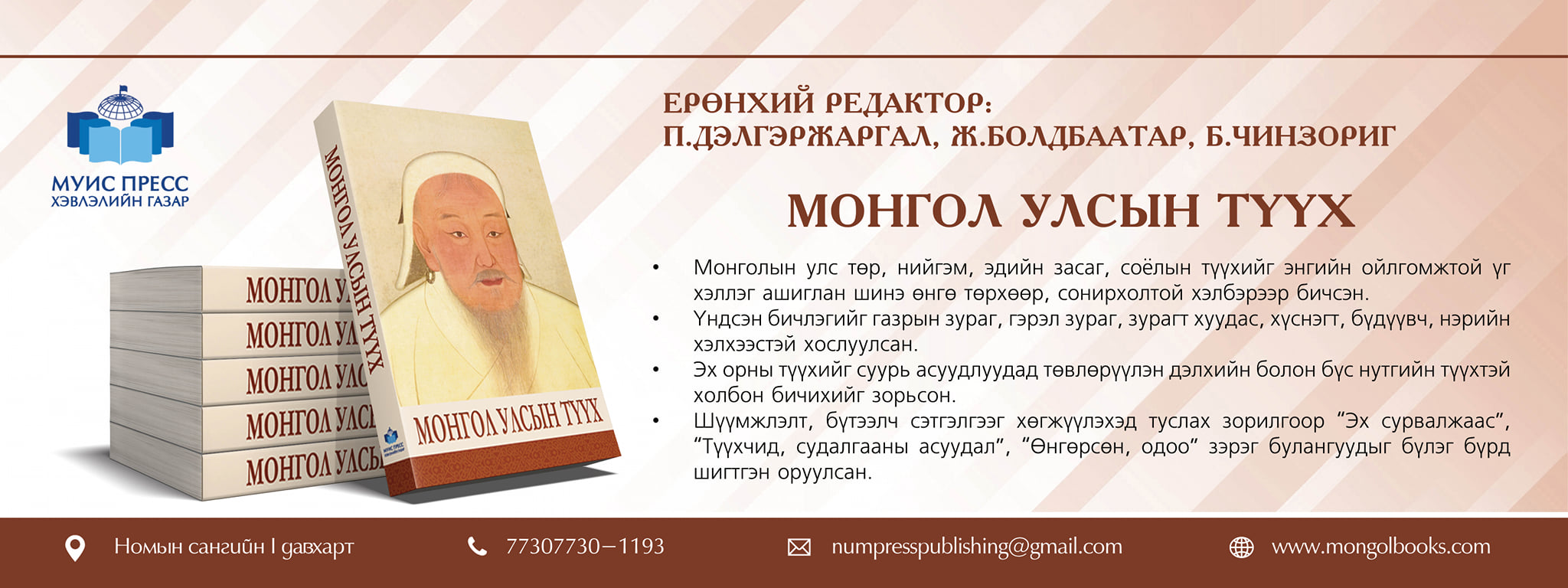 Эртний хүмүүс Монгол нутагт суурьшиж, анхны соёлыг буй болгосон үеэс эдүгээг хүртэлх Монголчуудын түүхийг харуулсан томоохон бүтээл таны гар дээр очиж байна.
